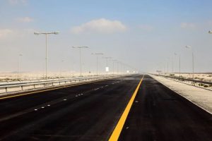 Rodovia Rei Hamad no deserto do Bahrein, Oriente Médio. Imagem utilizada para …