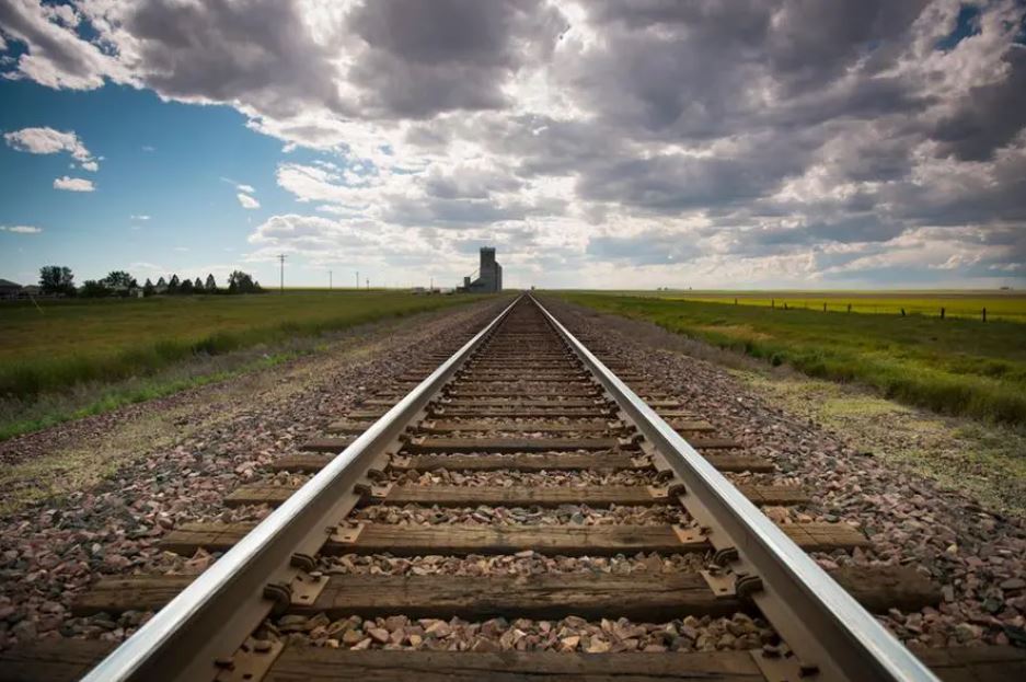 Os trilhos da ferrovia recuam em direção ao horizonte, com o céu escuro de verão se aproximando. Imagem usada para fins ilustrativos. Imagem cortesia: Getty Images/ Stephen Simpson